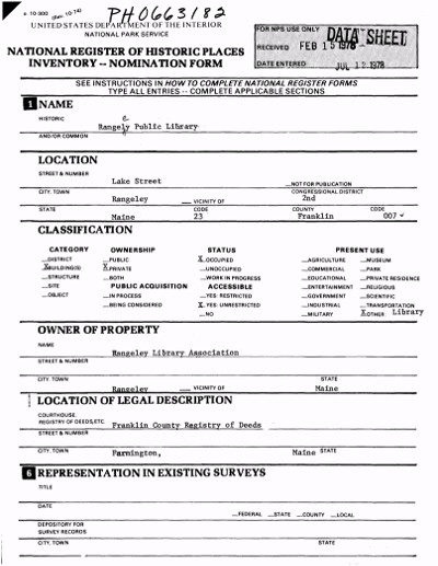 The Rangeley Public Library is a proprietary library owned and managed by the Rangeley Library Association, a policy-making Board of Trustees/Directors, whose mandate is to provide management and resources so the Library may provide information and materials for the interests, information and enlightenment of all people in the Rangeley area.